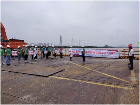 今年6月是第19个全国“安全生产月”,主题为“消除事故隐患,筑牢安全防线”的思想。监理部为响应安全生产月,于2020年6月30日上午督导施工方组织开展了本次“落水应急救援演练”。
